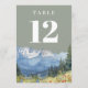 These modern, elegant sage green watercolor mountain wildflower table numbers are perfect for all celebrations. Designed by Thisisnotme©
