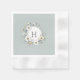 This exquisite napkin features a custom monogram centerpiece, encircled by a delicate wreath of white and cream flowers set against a serene sage green background. Perfect for adding a touch of elegance to any table setting, these napkins blend classic charm with personalised flair. Ideal for weddings, bridal showers, or any special event requiring a sophisticated touch. The neutral colour palette complements a wide range of dinnerware and decor, making these napkins a versatile choice for enhancing your dining experience.