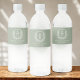 Sage Green Monogram Botanical Wedding Floral Crest Water Bottle Label