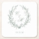 Sage Green Monogram Botanical Wreath Wedding Square Paper Coaster