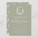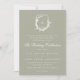 sage green monogram classic leafy crest wedding invitation