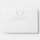 Elegant and minimal monogram crest design Wedding envelope. Features a beautiful crest and floral leaf line art design in a stylish sage green colour. Ready for you to customise with your initials and name and address details, or delete the name and address text to leave blank. Please browse the Sage Green Monogram and Floral Crest Wedding Suite for matching products.