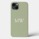 This gorgeous phone case features your monogram initials or custom text in white on an earthy sage green.
