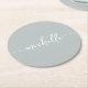 Sage Green Monogram Name Script Signature Round Paper Coaster