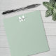 This notepad features a smooth sage green background with a white initial centered at the top. Your name appears in black script across the initial for a clean, personalized touch.