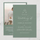 Sage Green Monogram Script Photo QR Code Wedding Invitation