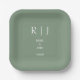 Sage Green Monograms Minimal Modern Simple Wedding Paper Plate