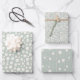 Chic neutral pattern design wrapping paper, made in three different elegant minimalist abstract hand-drawing motifs, in sage green and ivory.