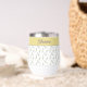 Olive branch botanical green wine tumbler design featuring a delicate leafy pattern on a soft neutral background with a scalloped border and name detail. Perfect for outdoor drinks, picnics, and everyday use with elegant greenery and minimalist botanical style.