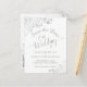 This beautiful postcard is designed to give your friends and family advance notice of your upcoming wedding. It features a simple yet elegant design with a white background and lacy sage green coloured calligraphy and frilly silver faux foil curls and swirls in the corners. The back has a cute "pencil us in" graphic as well as room for a website and other information.