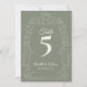 Elegant Sage Green Ornate Arch Botanical Wedding Table Number Card.
