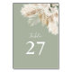 sage green pampas grass watercolor wedding table number