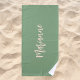 Sage green peach custom name script beach towel