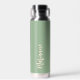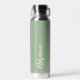 A sage green background. Personalise and add your name. Peach coloured handwritten style script.