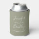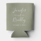 A little something for a wedding favour - personalised can coolers. We show Sage with chic white lettering, but you can change to any colours. The wording is completely customisable. You can add text to the front and back - even the bottom! Use Zazzle's "Personalise" tool to enter your information. If you need to change the placement of the text boxes, font colour or size just click on the "Click to customise further" button to change those things and/or add text to the back and bottom and change the background colour. Fun favour gift idea for wedding shower, rehearsal dinner or wedding reception. MORE COLORS in our store.