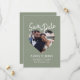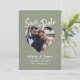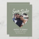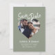 Dusty blue photo modern script save the date card featuring a centered heart-shaped photo, soft dusty blue background, and white script headline. This design highlights your engagement photo while clearly presenting names, date, and location in a clean, balanced layout that feels both modern and timeless. Ideal for weddings, destination celebrations, vow renewals, or formal engagements where a classic printed announcement is preferred. Easily personalize with your details.