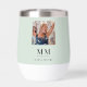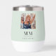 A sage green background. Personalise and add your photo, monogram initials and full name. Black text.
