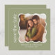The sage green background adds warmth and sophistication to a card your can personalize with your names, wedding date, and wording on the reverse side to create a save the date that feels uniquely yours.