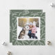 Christmas | Holiday Photo Square Card on a Sage Green and White Pine Branch Pattern Background and a Christmas Tree Pattern on the Back.