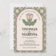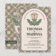 Celebrate your special day with this elegant wedding invitation featuring a timeless Art Nouveau rose illustration and a sophisticated geometric pattern. The delicate balance of sage green and dusty rose tones creates a romantic, vintage-inspired look.
