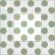 This design features a repeating pattern of sage green polka dots over a white background.