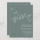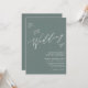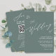 Sage Green Modern Script QR Code All In One Simple Wedding Invitation Card. Celebrate your special day with this elegant and beautiful wedding invitation card to beautify your special occasion. All the texts are pre-arranged for you to personalise easily and quickly with your own details. If you need further customisation or matching items, please email alldaybreakfastzazzle@gmail.com – we would love to help.