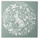 In restful, natural, pretty tones of sage green, this tile features a woodland bunny rabbit and birds in stylised floral and foliage designs. The circular design was originally painted by hand on a ceramic plate. My artwork is inspired by intricate antique chinoiserie pottery and tapestry art, such as William Morris' iconic pieces. This tile would be a beautiful home decor accent in any room, used as wall art, in a backsplash installation or as a trivet. Other colours of this set of woodland tiles are available in my store, Blue & White Designs by Tuzi Williams, https://www.zazzle.com/store/blue_n_white . Whimsical, unique artwork & designs by Tuzi Williams.