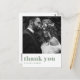 Send thanks to family and friends with this customisable photo thank you postcard. It features retro bold typography and a heart icon. This sage green thank you card will be perfect for various events such as weddings and graduations. Personalise by adding your favourite photos. Available as a flat and folded card.