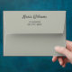 A sage green background. Personlize and add a name and your return address. The name is written with a modern and trendy handlettered style script. Perfect for birthday party and wedding invitations!