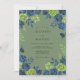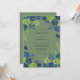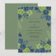 This design features a deep, earthy palette with a muted sage green backdrop. Clusters of moody navy blue roses and lime green foliage provide botanical elegance across the top and bottom. The painterly watercolor style creates a sophisticated and enchanting atmosphere for a forest or woodland event. Vibrant tea roses and delicate sprigs offer a high-contrast look that feels both classic and contemporary.