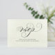 Elegant and minimalist wedding RSVP response card featuring a sophisticated calligraphy script and a convenient QR code for easy online replies. Designed with soft sage green tones and a clean, modern layout, this card is perfect for garden, botanical, or greenery-themed weddings. A stylish and practical way to streamline guest responses while keeping your wedding stationery suite cohesive and timeless. Fully customizable to match your special day.