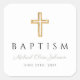 Personalized Sage Green Script Religious Cross Baptism Square Sticker.