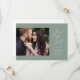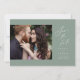 Modern script minimalist design in sage green, with couple's photo, simple and elegant. Great photo save the date cards for modern wedding and other events.