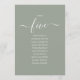 Sage Green Script Table Number 5 Seating Chart