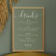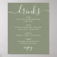 Minimalist script menu poster for alcohol and non-alcohol drinks bar in pastel sage green, pale green colours for woodland summer wedding. Suitable for birthday, anniversary and any other party. Please contact me if you need additional items.