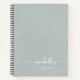 Minimalist Sage Green Elegant Girly Monogram Name Signature Script Custom Personalised Cookbook Recipe Notebook. These design featuring your first name in a pretty hand lettered style swash tail font typography on sage green or dusty green colour background. These are easy to customise and can be used as a Cookbook, Recipe Planner and more. Also great stylish feminine gift for birthday, wedding, mother’s day, bridal shower, anniversary and for anyone who loves glamourous style.
