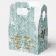 Pale soft pastel shades of sage green/light blue silk drape with pale white lace flamingos and flowers. This collection comes with a matching guest book for wedding guests or holiday visitors to sign