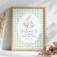 Welcome friends and family to your baby shower with this sage green gingham goose themed welcome sign.