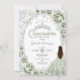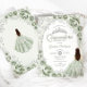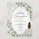 Sage green silver Quinceanera celebration invitation. Features brunette girl in ball gown dress, script font, silver butterflies, watercolor roses and tiara. Perfect for an elegant princess style glam celebration. Personalise with your own details. Printed Zazzle invitations or instant download digital printable template.