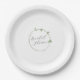 Paper plates for your bridal shower that feature grey, stylised script on a trendy, sage green colour, simple heart wreath design that complements the bridesmaid wedding colour scheme. Select your paper plate style and size.