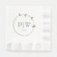 Elegant paper napkins for your wedding event that features a trendy, sage green colour, simple heart wreath with the bride and groom's initials and wedding date in stylised lettering. Edit and replace initials and date with your own. Select your paper napkin colour.