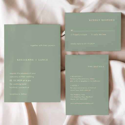 Sage Green Simple Modern Wedding Invitation SuiteDesigned by Cynthia