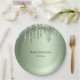 Sage Green Sparkle Glitter Drips Birthday Paper Plate
