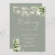 Sage Green String Lights Floral Monogram Wedding Invitation