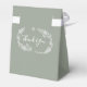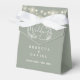An elegant wedding favour box featuring pretty string lights and hand-drawn floral foliage on a sage green background. A perfect way to say thank you to your guests! Designed by Thisisnotme©