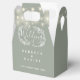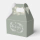 An elegant sage green wedding favour box featuring string lights and hand-drawn floral foliage. You can personalise with your own thank you message on the reverse. A perfect way to say thank you to your guests! Designed by Thisisnotme©