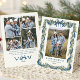 Sage Green Stripped Blue Bow Christmas 5 Photo Holiday Card