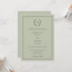 A soft sage green colored background decorated with a taupe, hand drawn wreath. White colored frames and text. Personalize and your monogram initials, names and details.