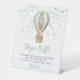 Enhance your vintage sweet style "adventure awaits" themed baby boy shower with our adorable diaper raffle sign. Featuring a cute teddy bear wearing a bow, flying on sage green hot air balloon surrounded by stars, this sign adds a touch of style to your celebration. Don't miss out on this delightful addition to your event decor!