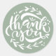 Sage Green Thank You Modern Calligraphy Wreath Classic Round Sticker